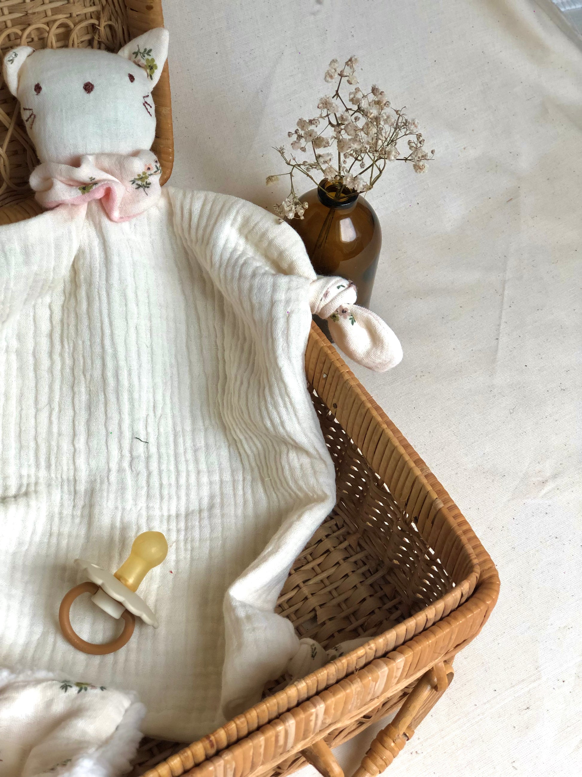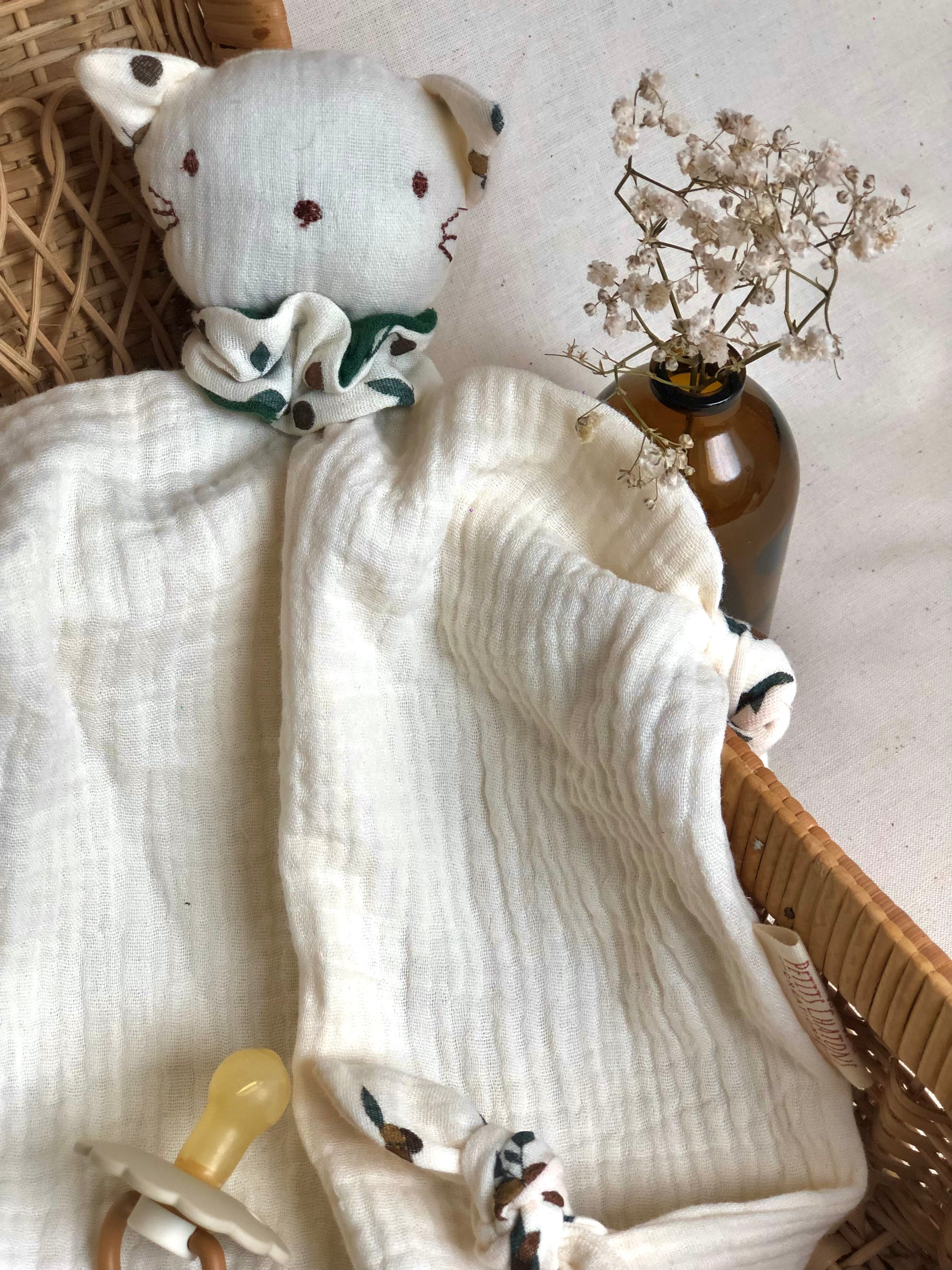 Des doudous tout en gaze de coton, un grand corps de 30x30cm pour de gros calins !